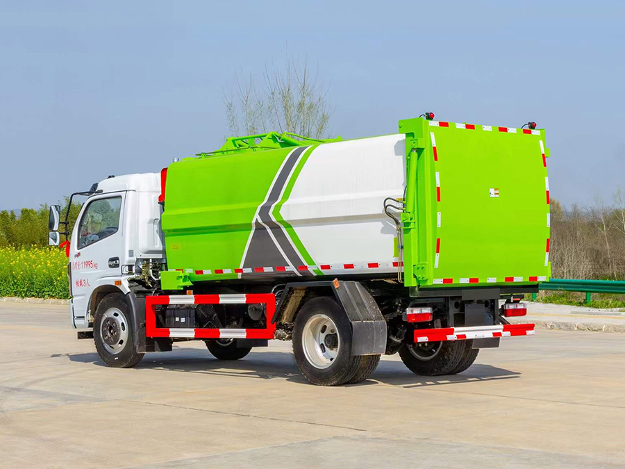 箱體有效容積約11立方米,采用邊三底四Q345錳板,弧形耐壓箱體,側裝拉桿式提升機構,可提升120L/240L垃圾桶,帶全推裝置,后門液壓鎖緊,整體密封效果好,尾部帶污水箱排污口,采用威森博樂全套液壓系統,帶電控制系統,手動室外操作。