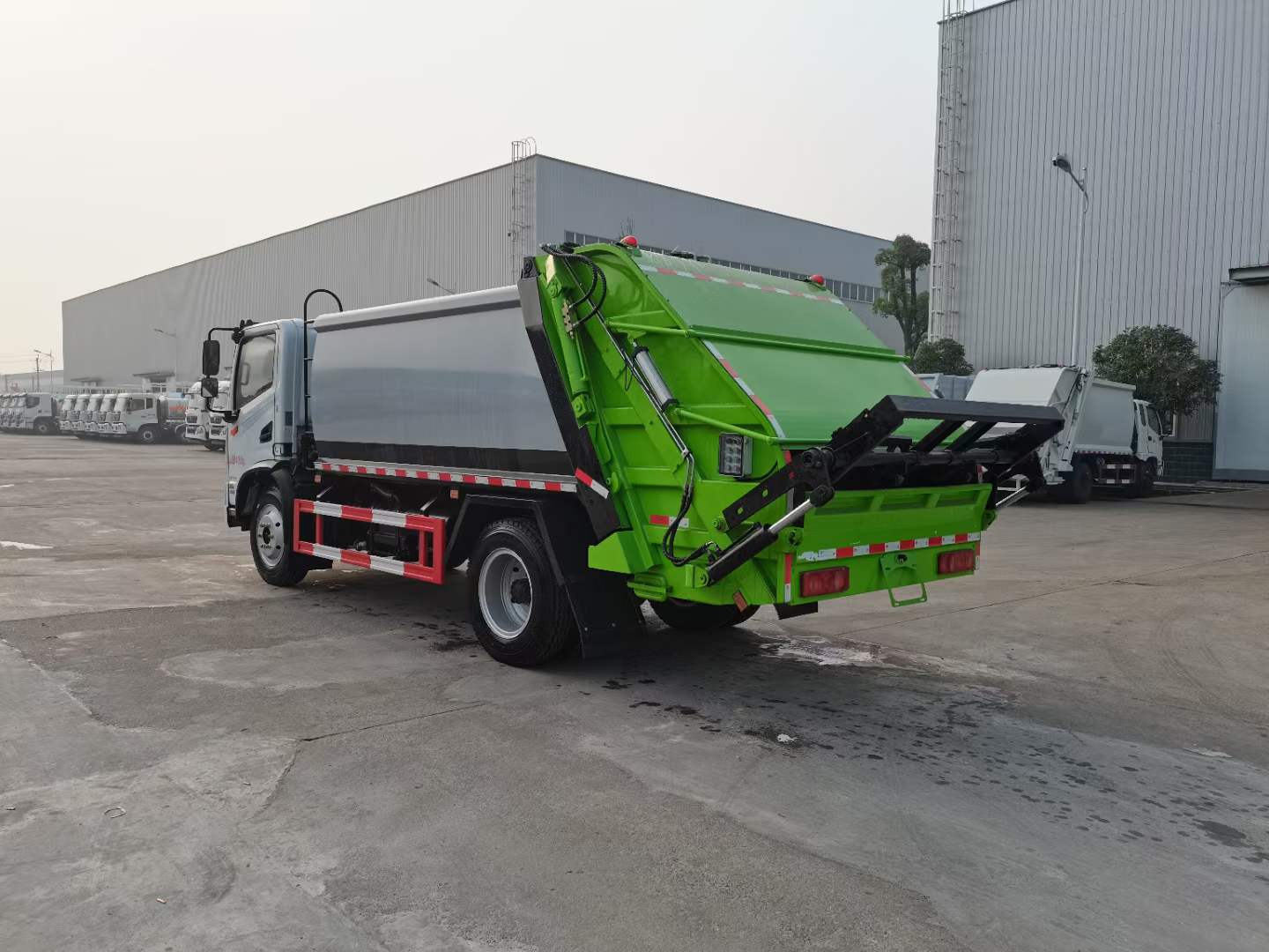 底盤配置: 配置一:云內(nèi)150馬力,萬里揚(yáng)6檔變速箱,前橋2.2噸,后橋4.2噸,8.25鋼絲胎,斷氣剎,ABS,空調(diào),氣囊座椅,電動窗,中控鎖。 配置二:玉柴165馬力,萬里揚(yáng)六檔箱,190mm雙層大梁,8.25R20鋼絲胎,2.4/6前后橋,帶空調(diào),氣囊座椅,遙控鑰匙,行車記錄儀。 上裝配置:1,新款弧形箱體,增加箱體容積,整車更美觀,箱體為碳鋼制作,底箱及填充器采用加厚鋼板,耐腐蝕使用壽命長,一層油漆噴涂處理。2,裝載循環(huán)時間=25S;垃圾排出時間≤25S;填料提升角度≥95°,壓縮比例為1/3-1/2,一裝部分具備雙向壓縮和蠕動壓縮功能帶。3,新款結(jié)構(gòu)加大填充器,手電一體操作模式,帶駕駛室操作,帶駕駛室一鍵卸料功能,3308軸距以上配遠(yuǎn)距離遙控器,尾部裝置可以選裝垃圾翻轉(zhuǎn)斗,掛桶翻轉(zhuǎn)板或者大落地斗。4,CAN總線控制方式,光電開關(guān)加延時雙系統(tǒng)控制,降低故障率,方便維修。5,帶夜間照明裝置,6方)及以上車型帶雙污水箱,污水箱排水球閥和排水蓋,增加排水管,防止濺水,人性化設(shè)計。6,標(biāo)配選用:威森搏樂油缸,威森搏樂多路閥,3308軸距以上配備壓實閥(背壓閥),所有車型標(biāo)配單泵。5000軸距、后八輪車型標(biāo)標(biāo)配雙聯(lián)泵,大油量多路閥。 選裝配置:大落地斗,帶后擺臂,另帶單一掛桶裝置,尾部密封蓋手動/氣缸控制,雙聯(lián)泵(多路閥聯(lián)數(shù)增加,液壓泵加大,液壓油箱加大)。 |