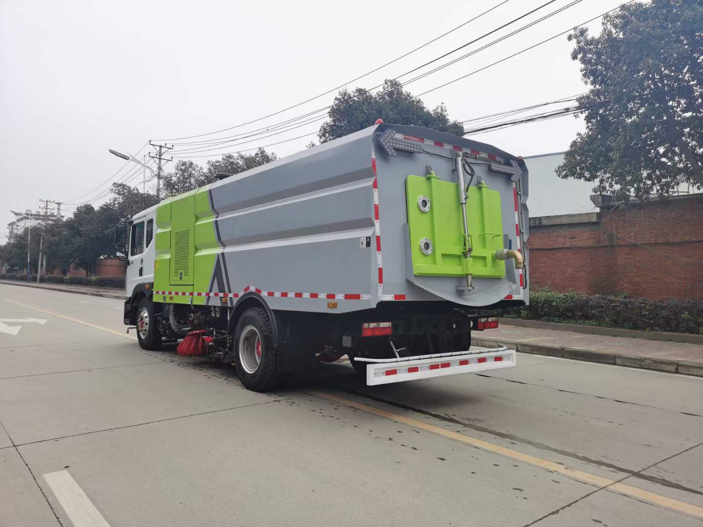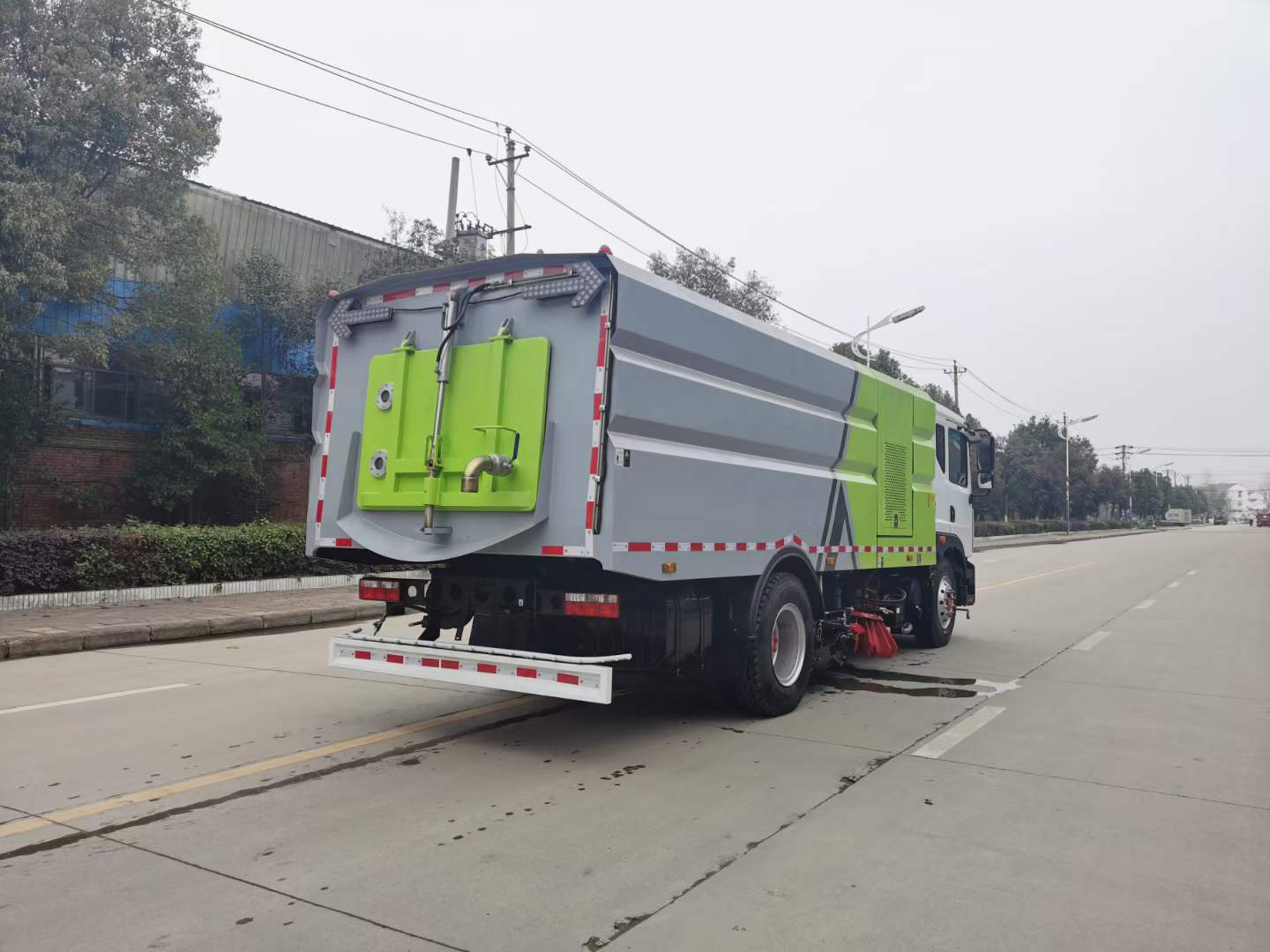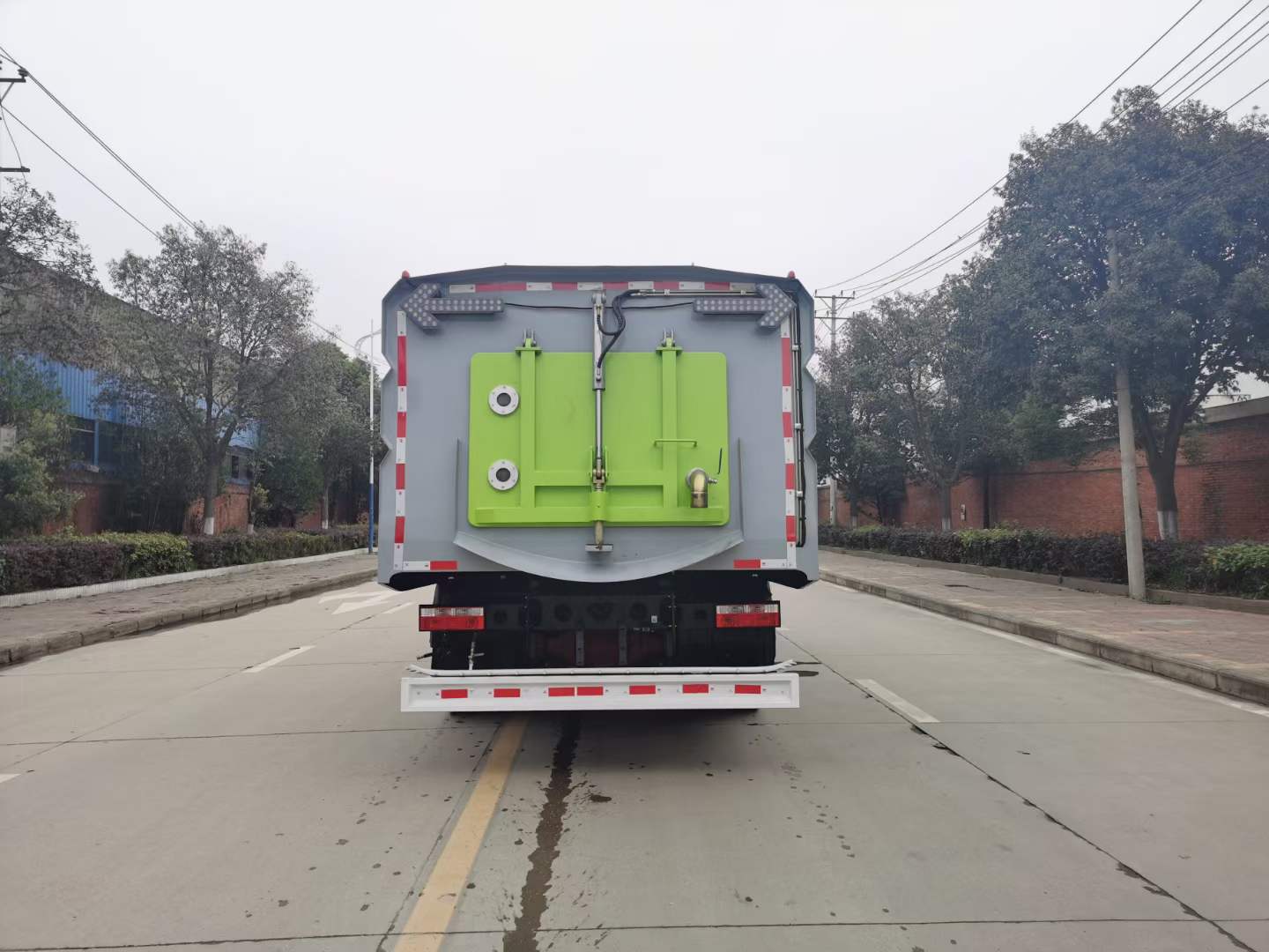 整車長/軸距/對應關系(mm):8500/5000,8200/4700;側防護由專用裝置吸盤、掃刷代替;后防護裝置材料為Q235,焊接連接,截面尺寸為:120×50(mm),離地高度為:350(mm);ABS系統生產廠家,型號:焦作博瑞克控制技術有限公司,J ABS;該車專用裝置主要由吸盤和掃刷組成,用于路面洗掃作業.