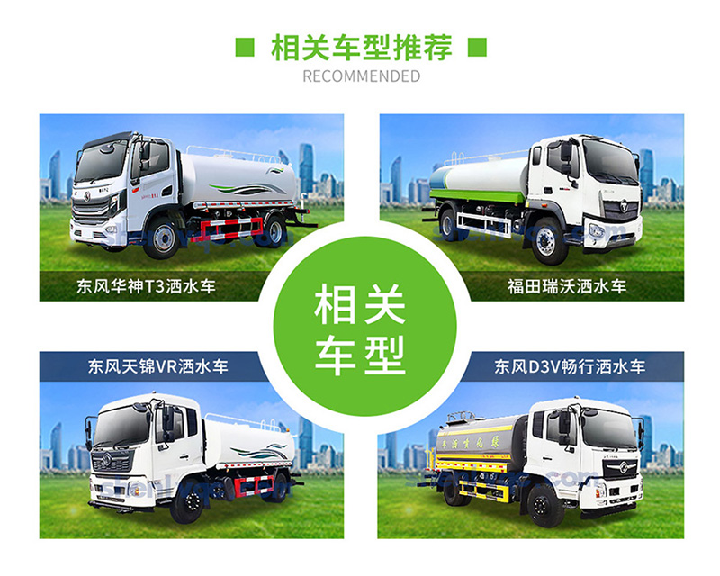 | 標配 | 前沖、后灑、側噴、后平臺高炮、自流閥、消防接頭、濾網、噴頭、帶自吸自排。 | |